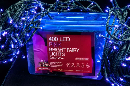 400 LED String Lights Pink – Green Wire Size: First to Last LED 39m Christmas lights that can be connected are an Australian invention. Our selection of lights is an easy way to fulfil a variety of decorative needs, including those for the Christmas tree, window, Christmas and wedding events. Light up a huge space quickly and easily by linking together multiple sets of Christmas Elves Connectable Ready Lights. Â
