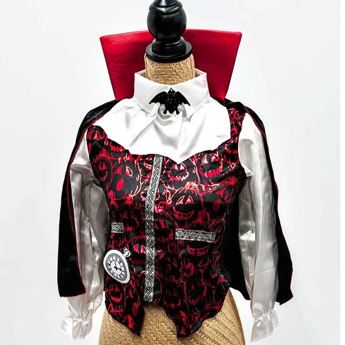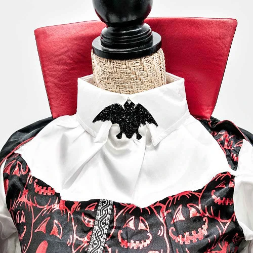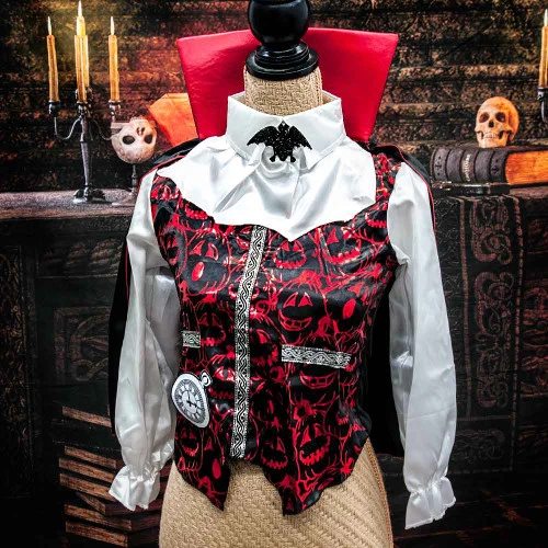 Costume Vampire Boys Age: 3+ Includes: shirt, cape, pants, collar With this Boys Vampire Halloween Costume, you and your friends will have a terrific time at the next spooky dress up party you attend. This traditional take on the vampire look is simple enough for even the youngest of children to pull off for Halloween, and it’s just the thing for lurking in the shadows on October 31.