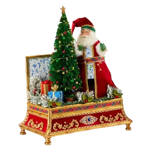 Katherines Collection Santa With Christmas Tree On Treasure Box – 51cm