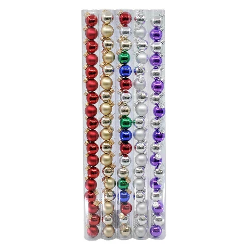 Mini Glass Baubles Set of 18 (5 Colours) Size: 2.5cm An awesome value pack of mini glass baubles to add a pop of colour to your Christmas tree, wreath or centre piece this season. Choice if colours. Subject to availability.