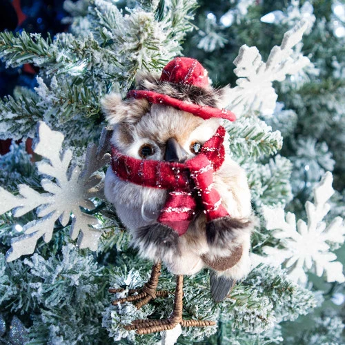 MRS Owl with Hat and Scarf Size: 19cm Create a woodland theme display with this absolutely delightful Owls in stunning red hat and scarf. She would look great on your mantle, amongst your Christmas tree or tabletop display.