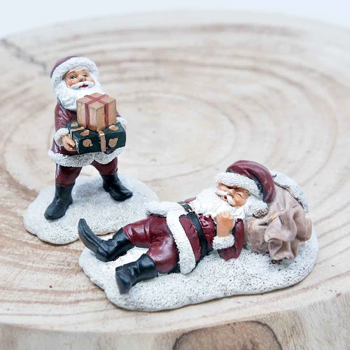 Santas (Set of 2) Size: 7cm and 9cm Santa Claus isn’t like other people! This will make a fantastic addition to your home decor, showing Santa relaxing and Santa handing out gifts. You’ll enjoy the holiday season more because you’ll be immersed in a genuine Christmas atmosphere. Each sold separately. Subject to availability. Styles: Santa’s Resting & Santa’s Giving Present